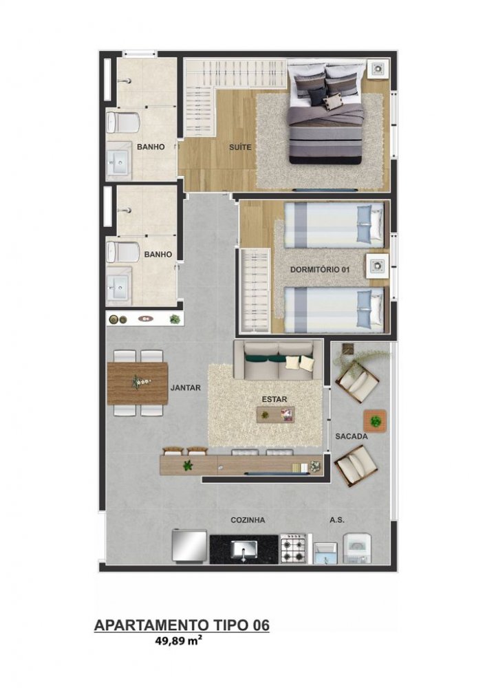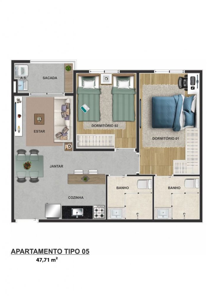 - Área Privativa: 47 m²