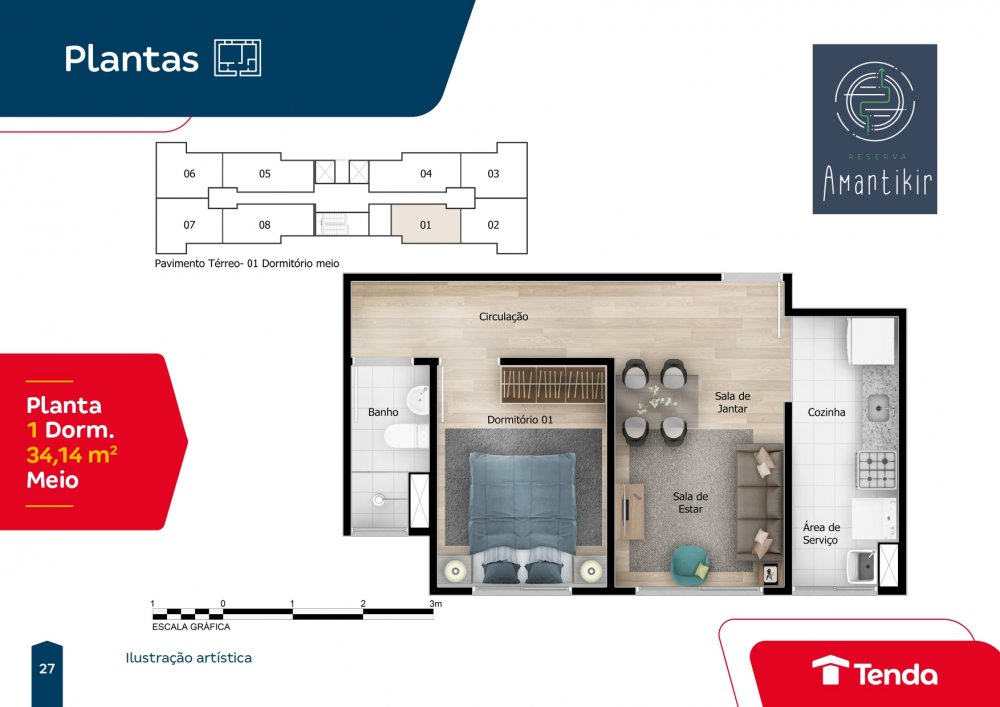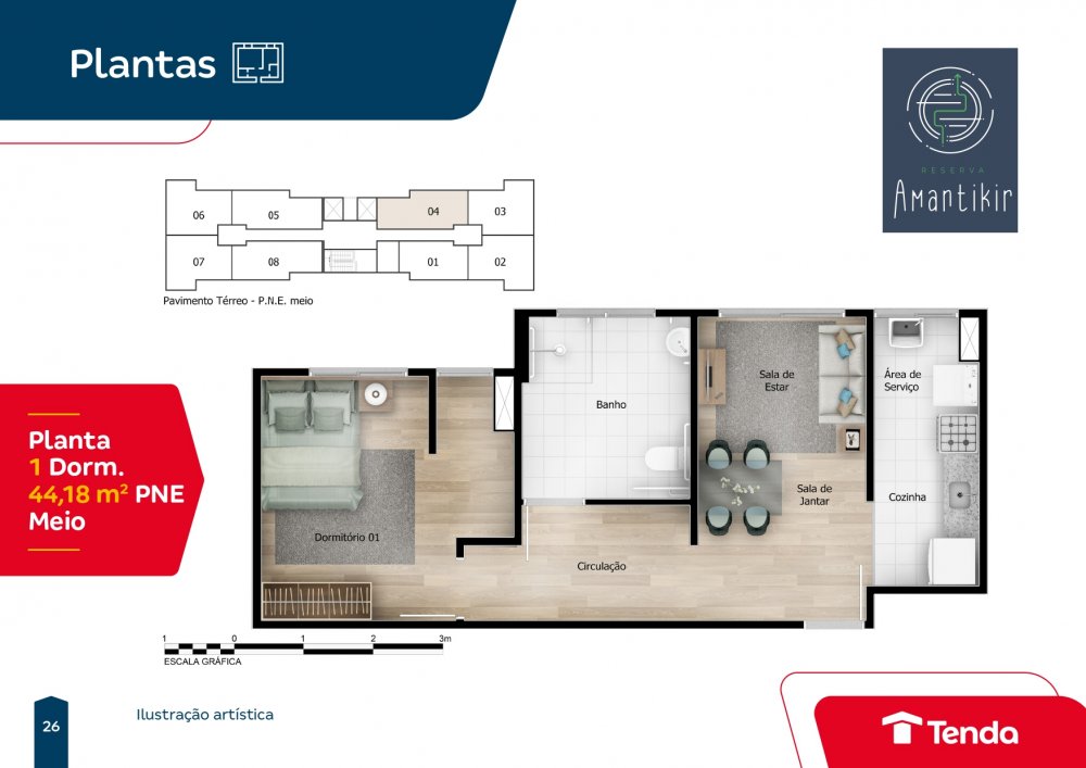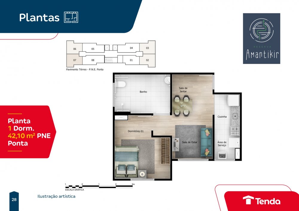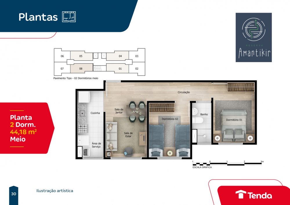 O Reserva Amantikir TENDA são apartamentos de 32, 42, 44 m² com 1 ou 2 dormitórios com ou sem vaga livre.