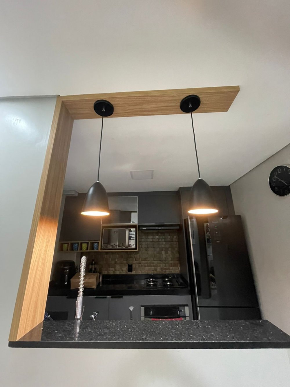Balcão decorado, planejado com pendentes.