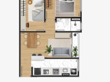 Apartamentos de 41e 54 m² com 2 dormitórios varanda grill e 1 vaga de carro.