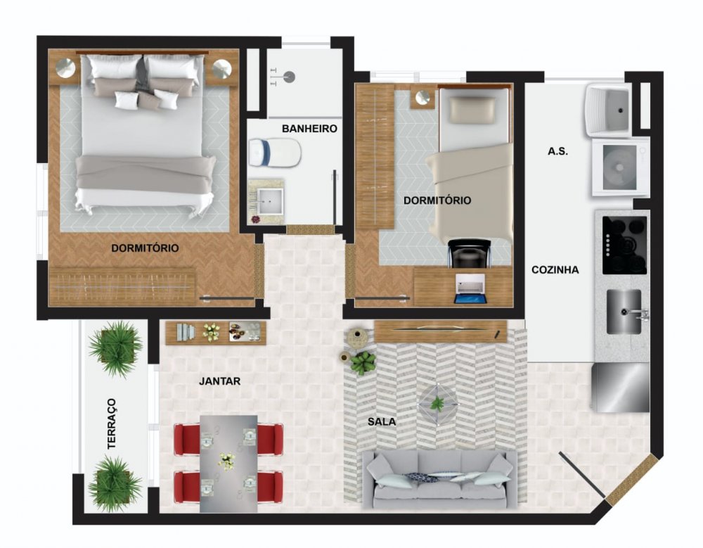 - Área Privativa: 44 m²