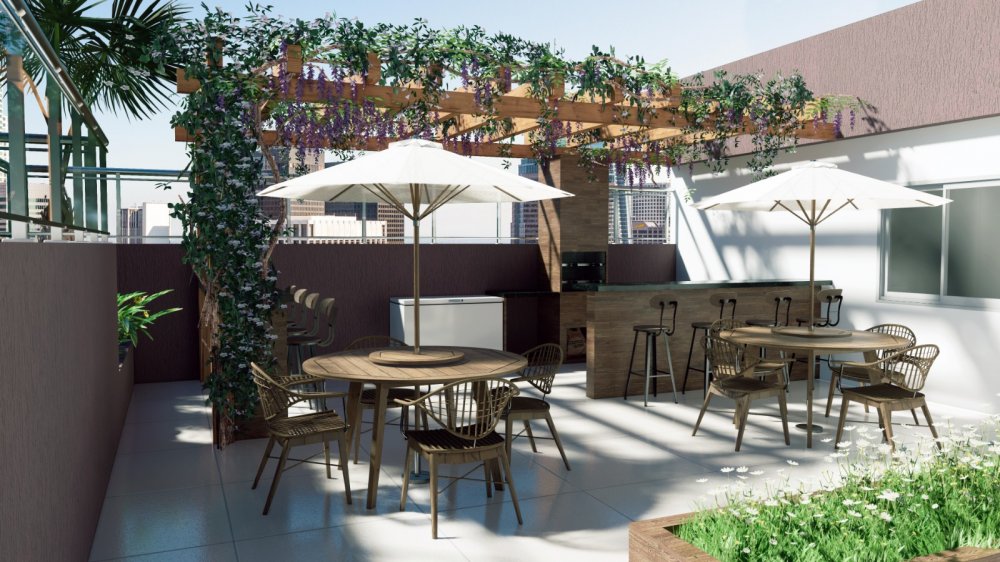 Apartamentos de 48 m² com 2 Dormitórios Varanda Gourmet (churrasqueira a carvão)