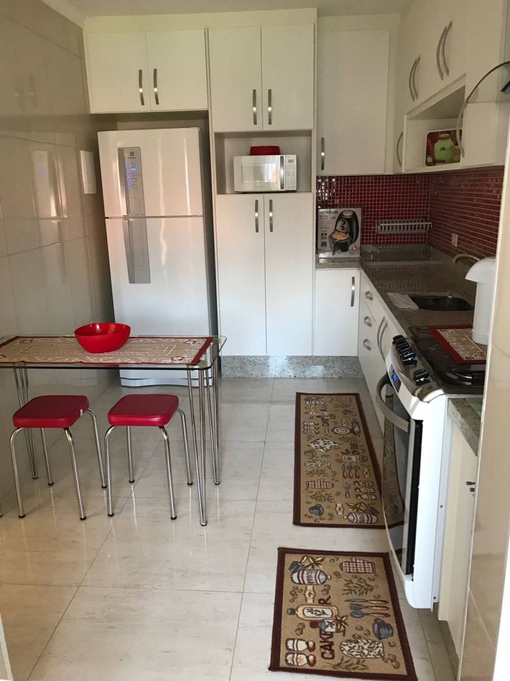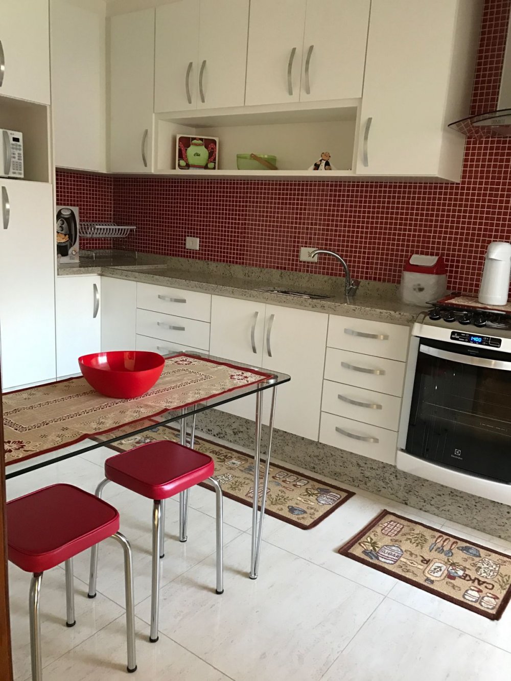 cozinha com porcelanato, pastilhas de revestimento