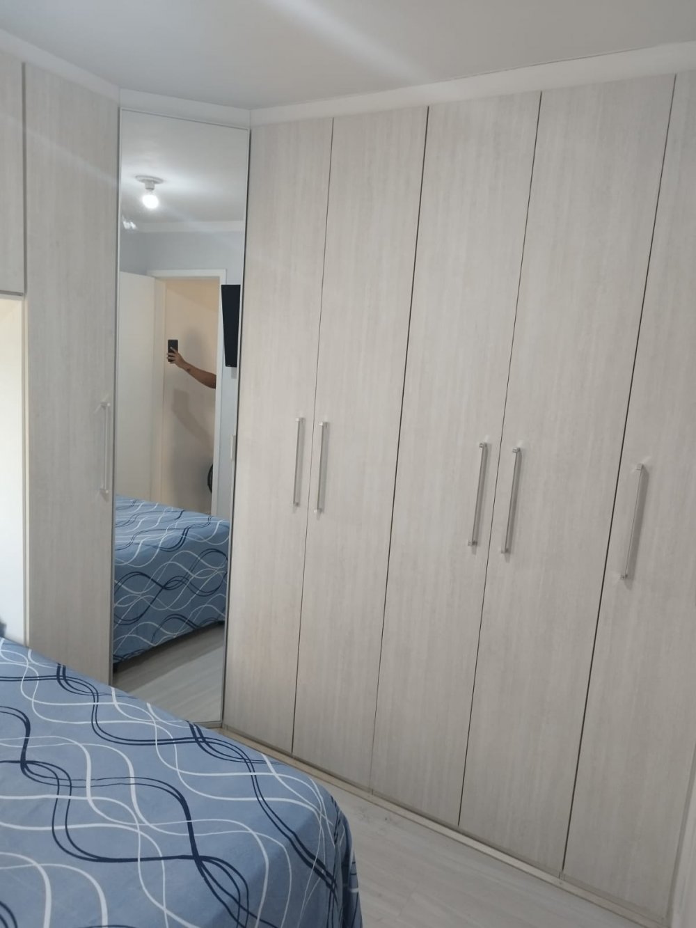 Apartamento possui planejado no quarto maior e cozinha com fogão incluso.