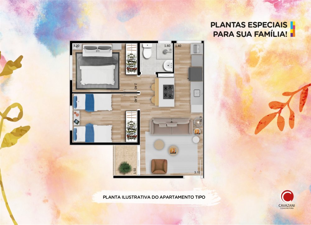Os apartamentos do Parque das Flores | Cavazani - Guarulhos foram projetados para oferecer a qualidade de vida e o conforto que você e sua família merecem. No Parque das Flores | Cavazani os apartamentos tem uma excelente distribuição e com conceito totalmente ampliado integrando a sua varanda ao convívio de seu apartamento.
