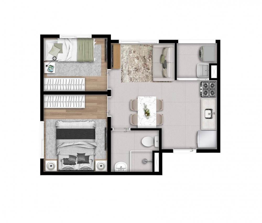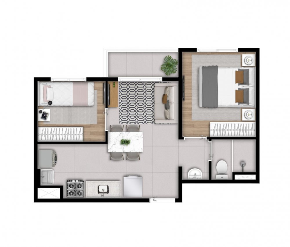 Apartamento de 36, 37 e 38 m² | 2 dormit...