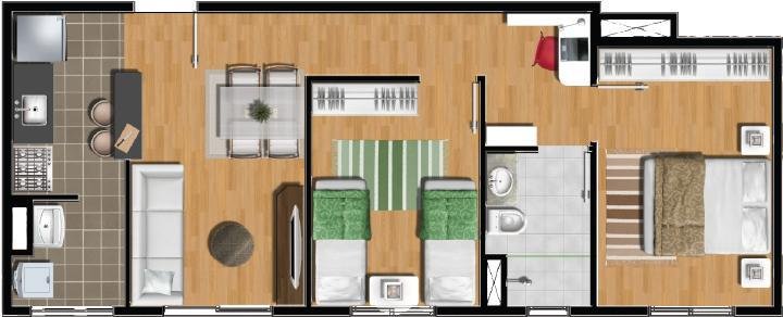 Imóvel aconchegante à venda com 2 quartos e 1 banheiro. Este imóvel está bem equipado com móveis planejados na cozinha e dormitório principal.