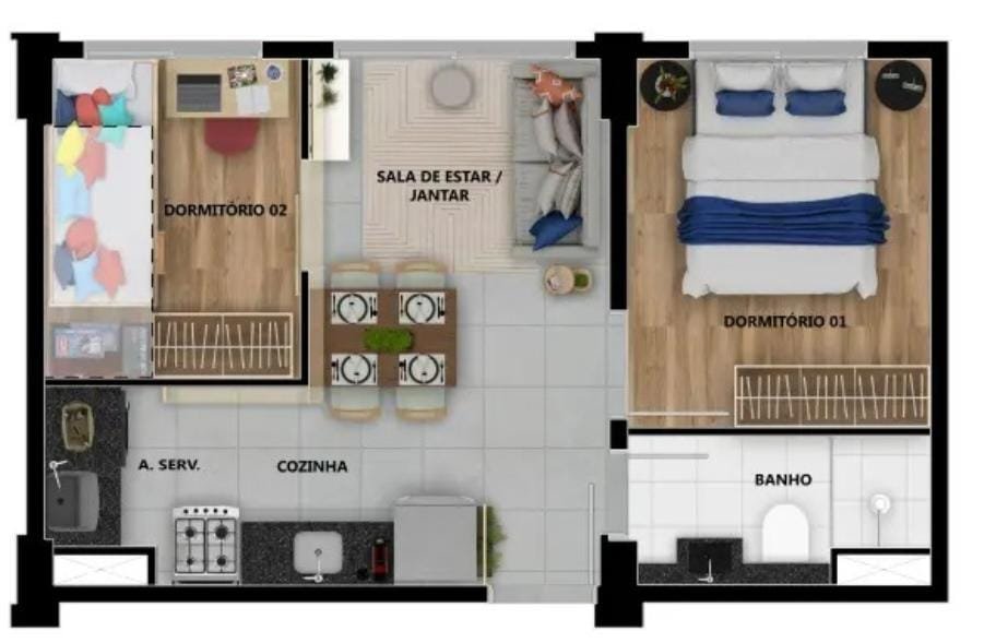 O Jardins do Prado TENDA são apartamentos de 34 m² com 1 ou 2 dormitórios com ou sem vaga livre.