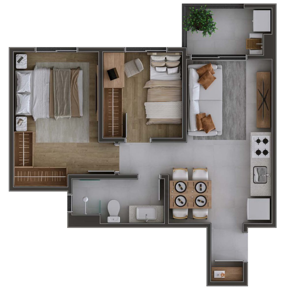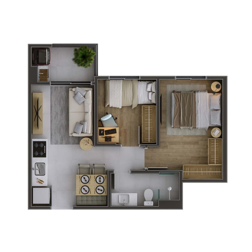 Apartamento de 36, 37 e 38 m² | 2 dormit...