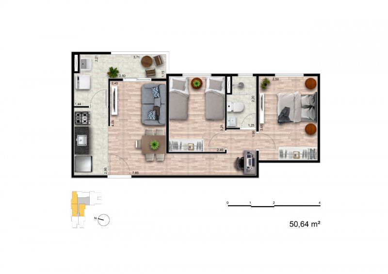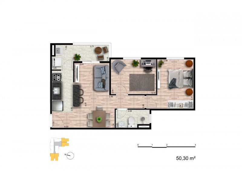 - Área Privativa: 50,30 m²