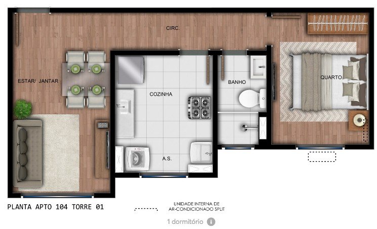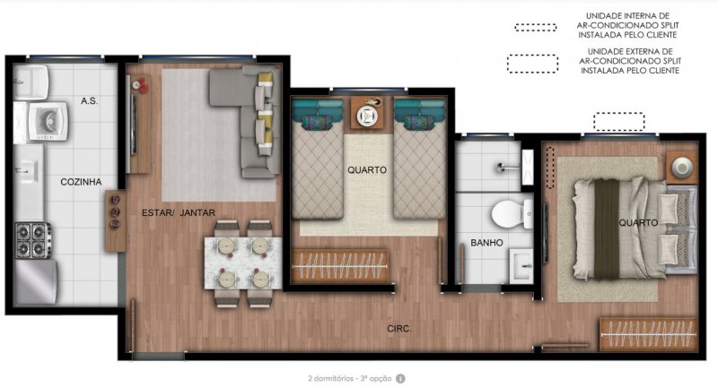 Apartamentos de 38 e 43 m²