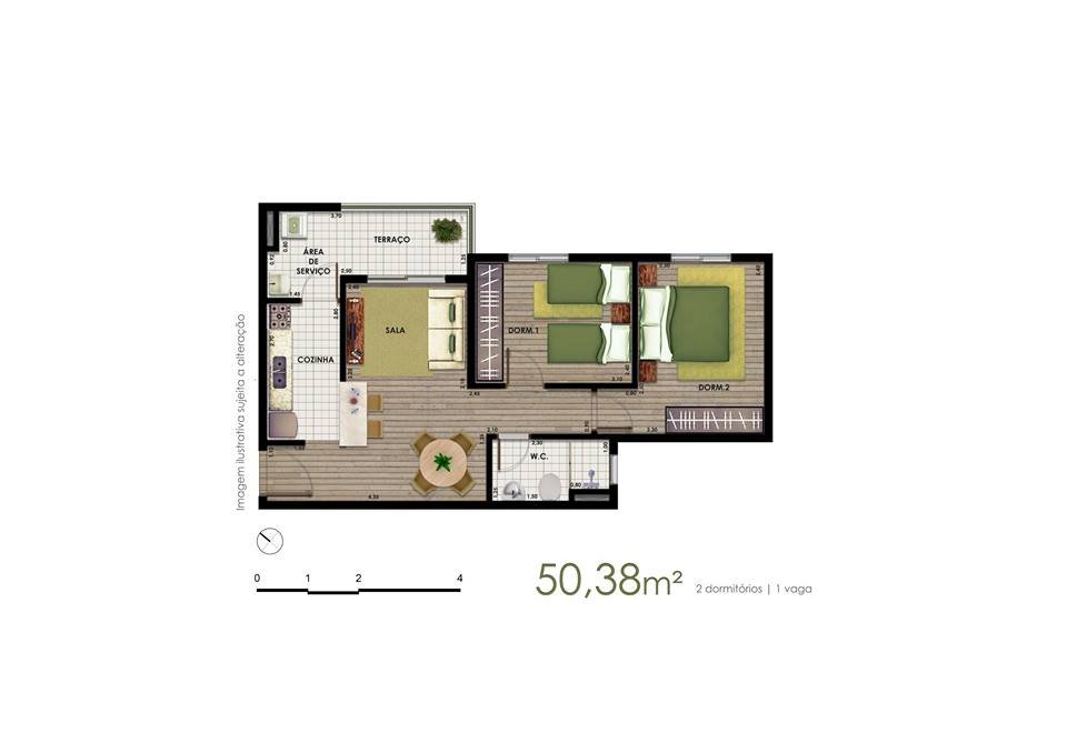 - Área Privativa: 49,94 m²